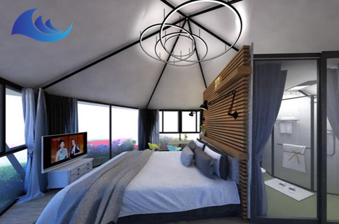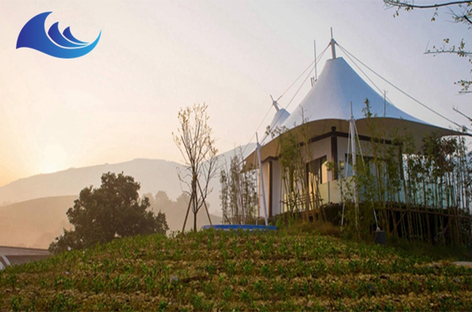 帳篷酒店采用高強度中空鋁合金結構或者是鋼結構,表面具備有防腐處理,優選膜結構頂棚,安全耐用,防水、阻燃、防紫外線。